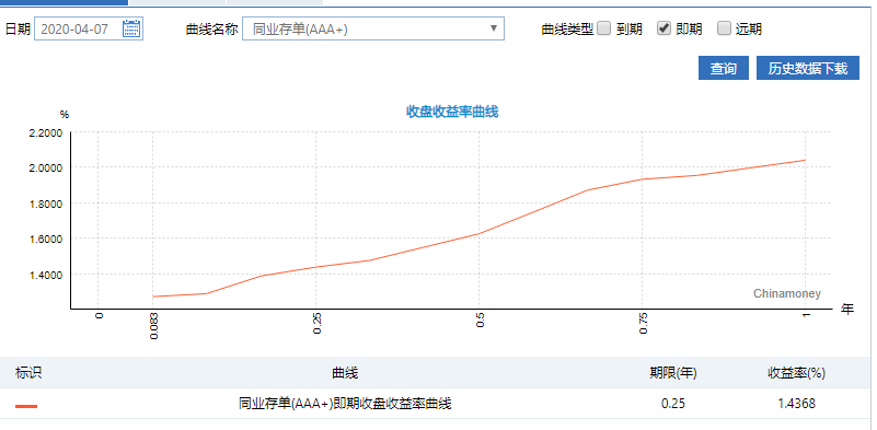 4月7日,3个月同业存单(AAA+)报价为1.4368%。这也显示银行通过发行同业存单融资的利率也进一步降低。