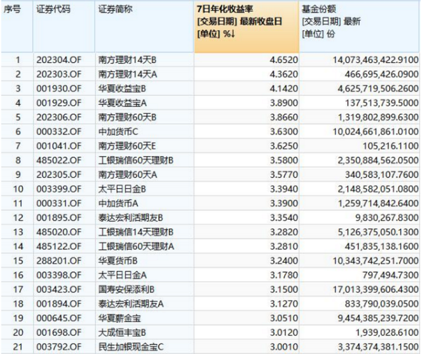 随着流动性进一步放松,货币基金的收益可谓“惨不忍睹”, 根据同花顺统计,全市场746只货币基金,355只7日年化收益率低于2%;7日年化收益率3%以上的只剩下21只。