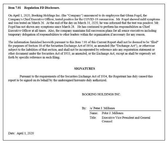 缤客公司的股价因为新冠肺炎的冲击,如此之惨就算了,甚至疫情都未放过这家美国最大的在线旅游公司的高管。4月2日,缤客公司向SEC提交的文件,该公司在当地时间4月1日向其员工宣布,公司CEO格伦·福格尔(Glenn Fogel)的新冠病毒检测呈阳性。缤客公司表示,福格尔在表现出轻症后于3月26日接受了检测,随后在3月31日被告知检测呈阳性,自3月28日以来,福格尔并未表现出任何症状,仍在继续履行CEO职责。