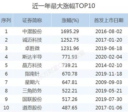 东方财富Choice数据显示,在过去的一年中,中潜股份累计上涨超近17倍,不仅连卓胜微(300782.SZ)、斯达半导(603290.SH)等超牛次新股也只能望其项背,更是超越当前势头正猛的诚迈科技。