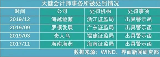 然而天健会计师事务所可以说是“屡有前科”,令人不安。就在公司决定更换会计师事务所前三周,天健会计师事务所因在海越能源(600387.SH)审计中存在问题才被浙江证监局出具警示函。去年9月和3月,该所也被广东证监局和福建证监局出采取出具警示函措施,主要因为其在罗顿发展(600209.SH)和贵人鸟(603555.SH)审计中未保持应有的独立性及未恰当利用专家工作。