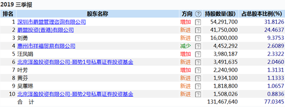 而公司持股的前十大流通股东,控盘总比例却高达77%(根据公司2019年三季报数据统计)。
