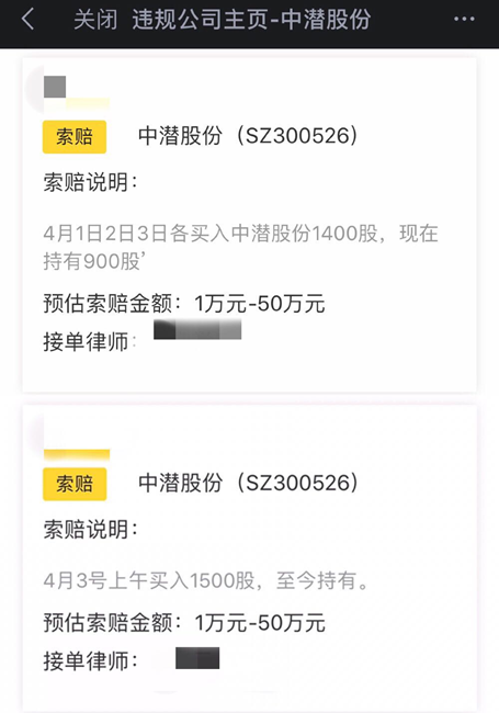 截至目前,平台目前已收到10件针对中潜股份的维权,其中4件已被律师受理。