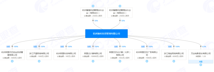 根据天眼查信息显示,杭州臻希投资管理有限公司成立于2017年11月,由杭州臻强投资管理合伙企业(有限合伙)和杭州臻晟投资管理合伙企业各认缴250万元注册资本,持股50%。而杭州臻希的对外投资则包含了阿里的主要业务体系,包括淘宝、天猫以及阿里云等。