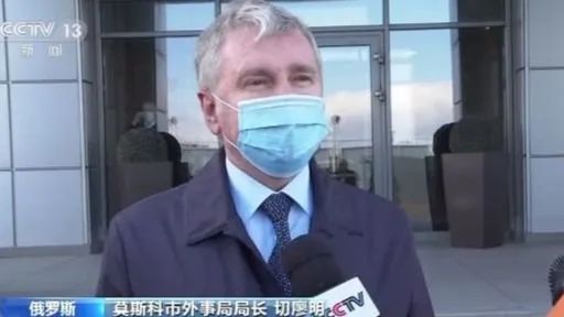 莫斯科市外事局局长 切廖明:感谢中国政府在我们如此艰难的时刻,派出专家组提供咨询帮助,并且向我们捐赠医疗物资,保护我们的医护人员免受病毒感染。