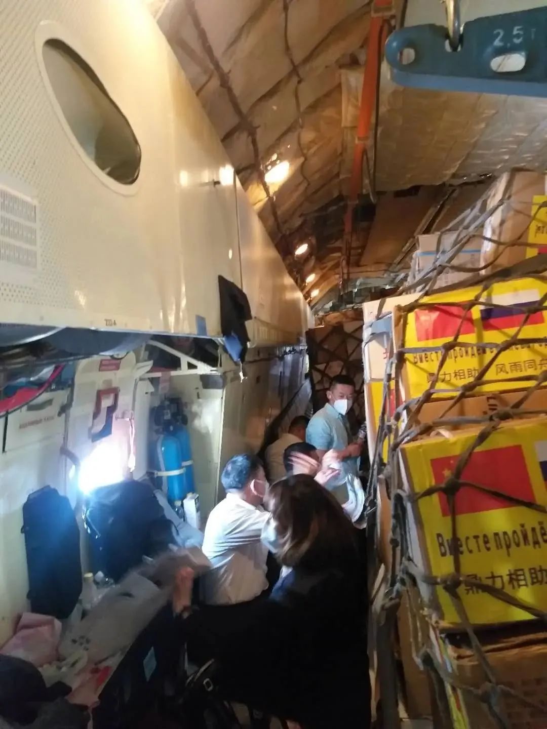 中国医疗专家组搭乘的是俄罗斯军用运输机,随他们一同去的还有向俄方捐赠的一批抗疫物资,包括一次性医用外科口罩、一次性医用普通口罩、N95防护口罩、医用防护服等