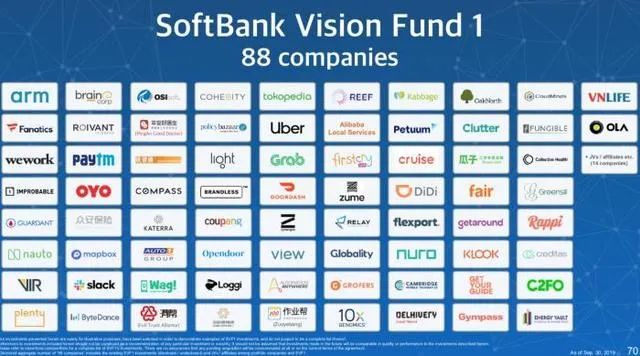 短短3年时间,该基金已投资700亿美元,累计投资了88家创业项目,其中便包括了滴滴出行、Uber、OYO、Wework等诸多共享经济领域的企业。