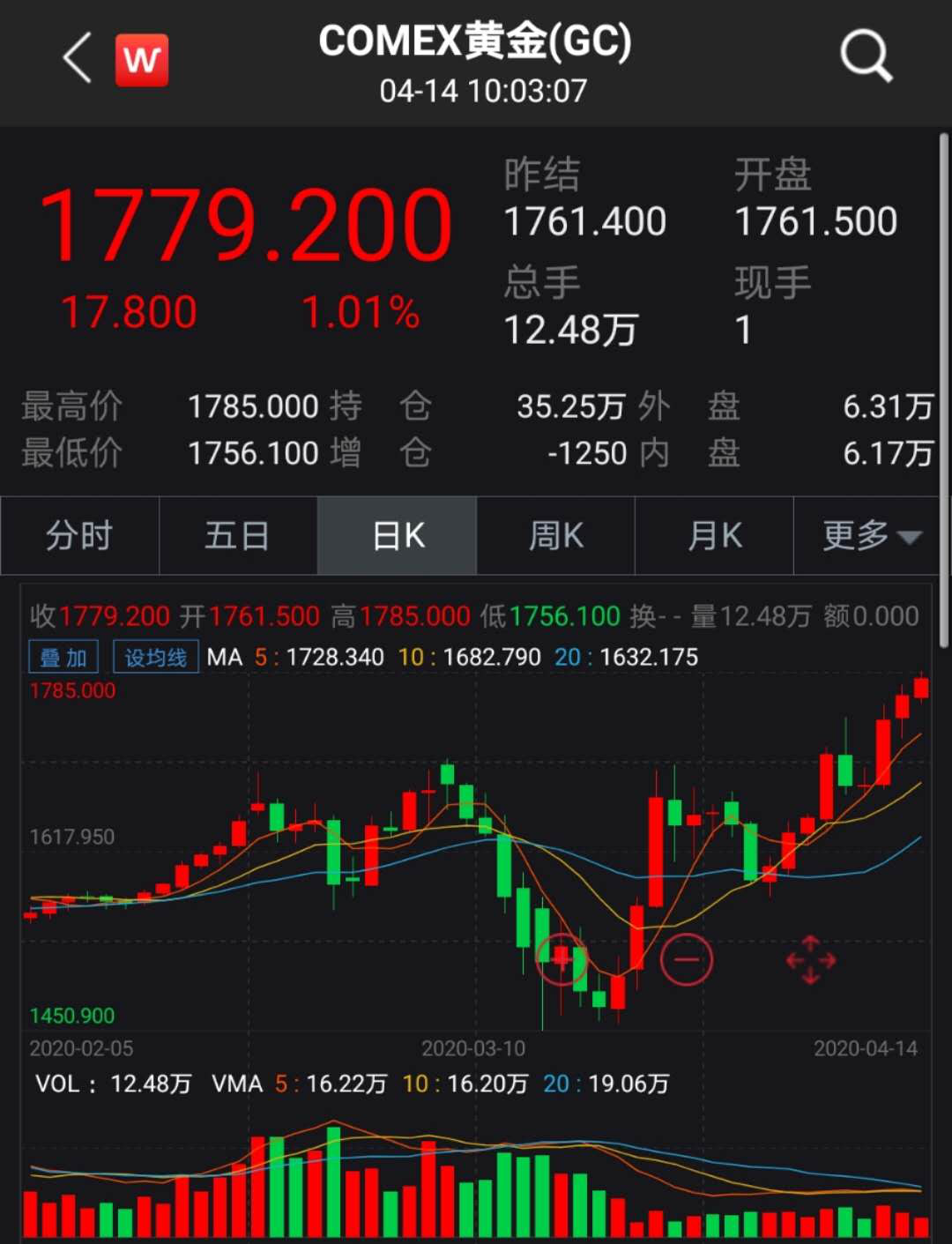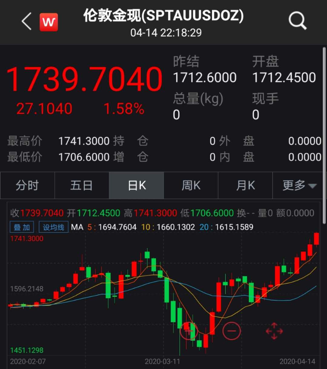 北京时间4月14日,伦敦现货黄金价格突破1700美元关口,纽约商品交易所(COMEX)黄金期货价格逼近1800美元,双双创出7年多新高。