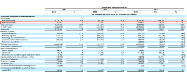 据聚美优品2018年财报显示,以街电为首的“服务与其他”收入,贡献了9.29亿元的营收,在集团业务中占比达到21.7%,较2017年大增18个百分点。