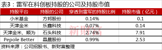 除了金山办公外,雷军还依托小米生态链,投资了石头科技、晶晨股份、乐鑫科技、方邦股份等科创板公司,延续了一贯的“内生+投资”的产业投资方式(表3)。