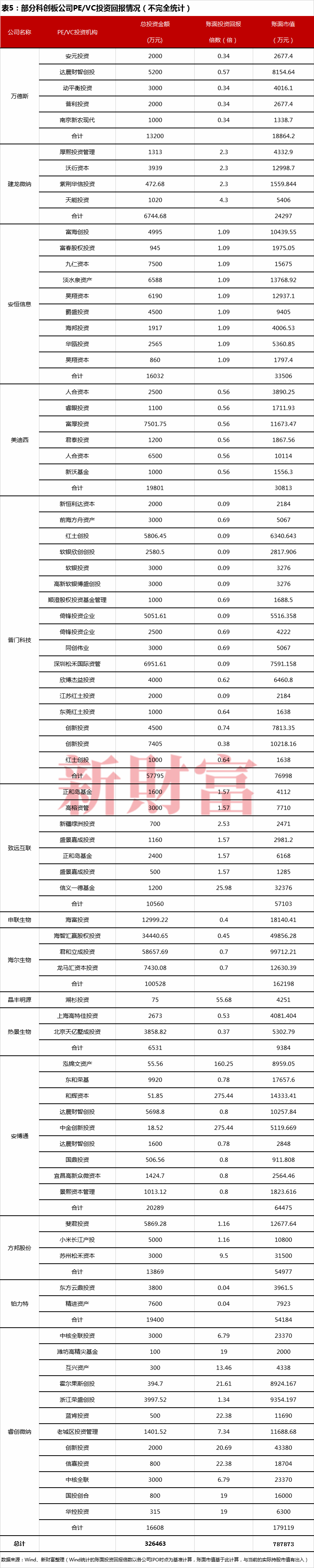 科创板的出现,也为PE/VC新增了退出渠道。如新财富统计的14家科创板公司中,合计有94家PE/VC进行投资,它们的投资总金额接近32.64亿元,而IPO时分的账面市值超过了78.8亿元,整体浮盈率超过100%。投资安博通的和辉资本,回报倍数高达275倍;而泓锦文资产则是投资3年便实现了160倍的投资回报,年化收益率超过了500%。