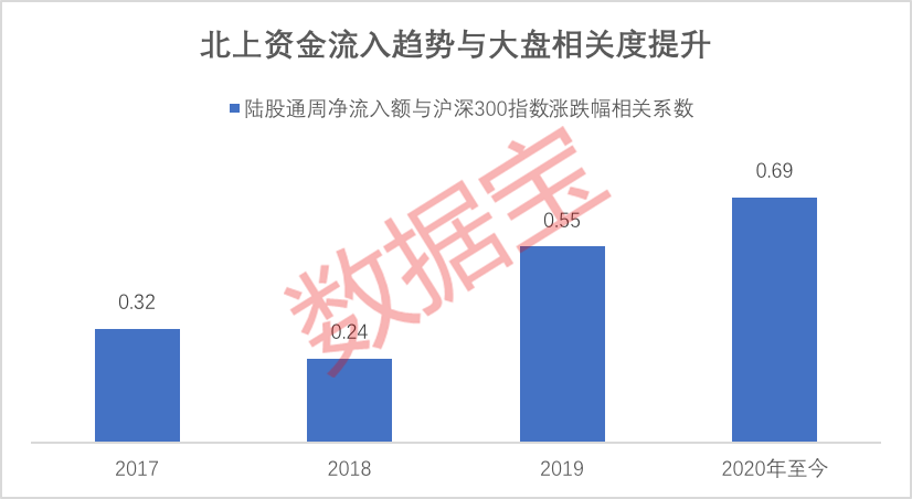 从资金流动趋势来看,今年以来北上资金的周净流入额与同期沪深300指数相关系数达到0.69,创下历年新高。这一方面说明北上资金对短线市场判断的准确度提升,另一方面说明北上资金对A股的影响力不断扩大。