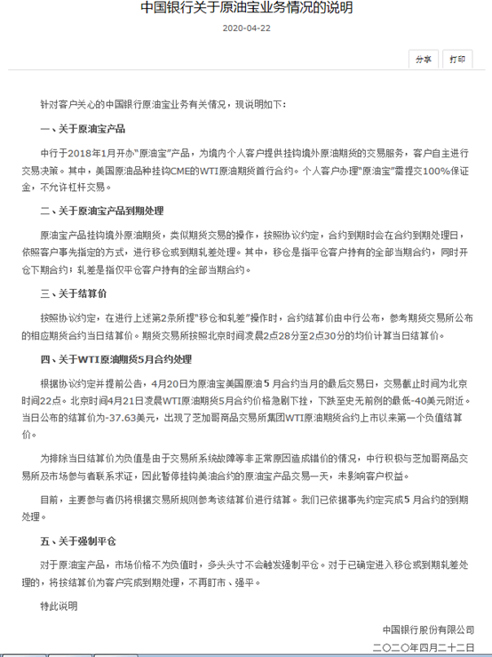 晚间时分,中国银行发布公告,针对原油宝业务进行了说明: