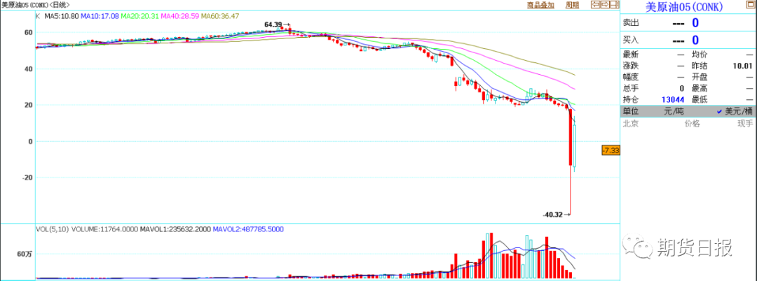 事情还得从WTI原油期货5月合约价格跌成负值谈起。北京时间4月21日凌晨WTI原油期货5月合约价格急剧下挫,下跌至史无前例的最低-40美元/桶附近。当日公布的结算价为-37.63美元/桶,出现了WTI原油期货合约上市以来第一个负值结算价。