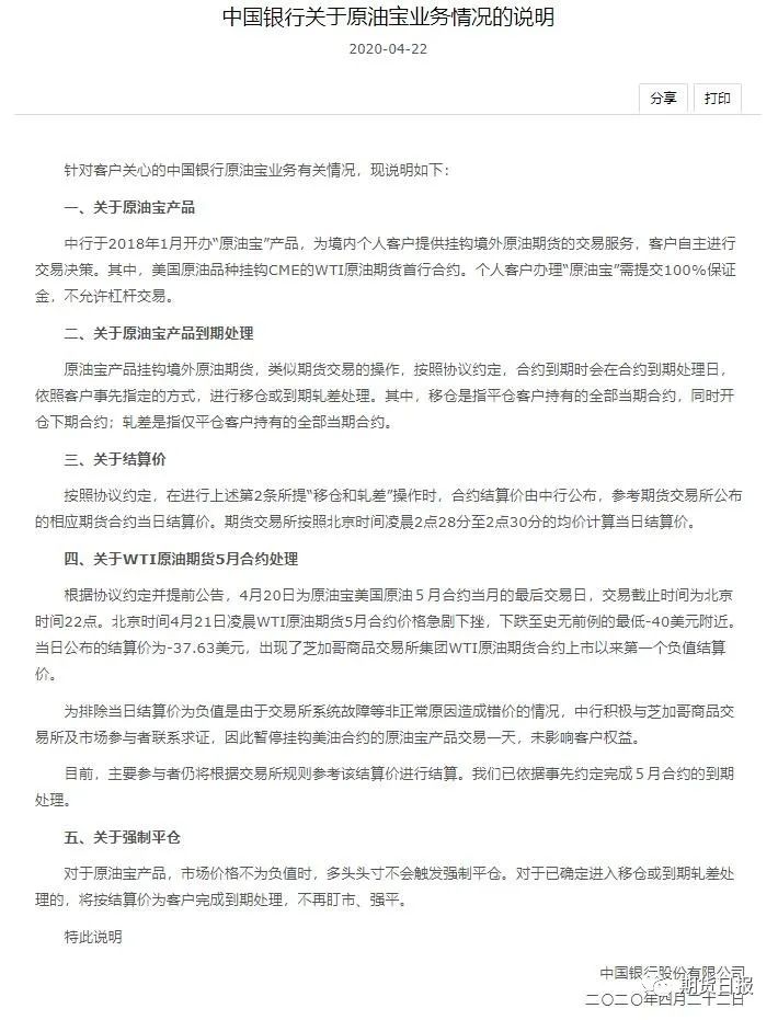 昨晚八点,中国银行官网发布了中国银行关于原油宝业务情况的说明。