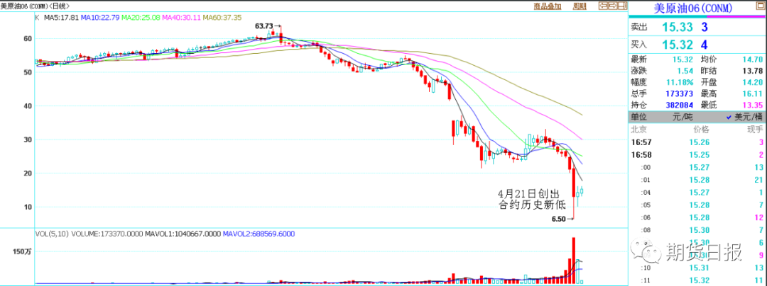 与此对应,昨日美油期货价格连续两日反弹,6月合约已经自21日的最低价格6.5美元/桶反弹至15.3美元/桶(昨下午17点价格),涨幅135%。