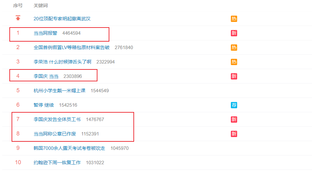 截至发稿,微博热搜前十有10条都与当当有关,发生了什么呢?