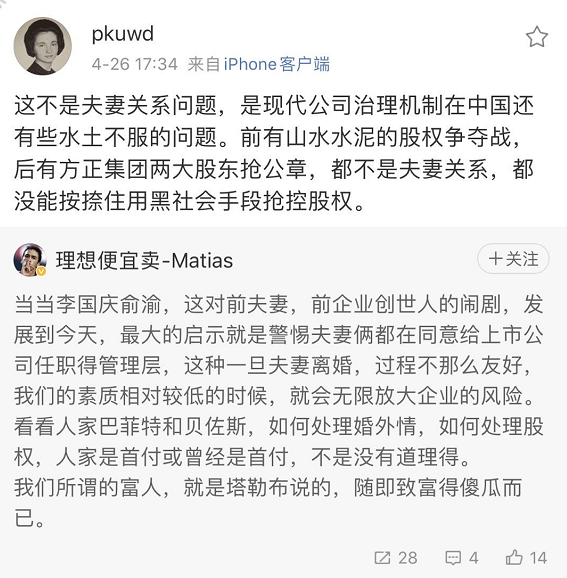 此外,李国庆在个人微信朋友圈转发自己的微博内容并表示:“狗急跳墙,工作撕逼虚构事实,私生活撕逼更是意淫。变态,精神病患者。我为儿子忍受23年。”