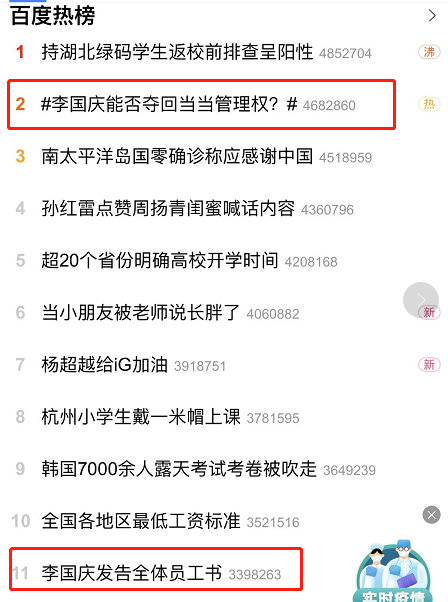 当然,从事件本身来看,即使拿不回当当控制权,他也不会输,反而有好处。因为,从过往几次事件来看,李国庆闹一回,他就能上一次热搜。26日,他又抢到了两条。而且,目前李国庆的微博粉丝也来到了530万这个水准,可以说是名副其实的大V。