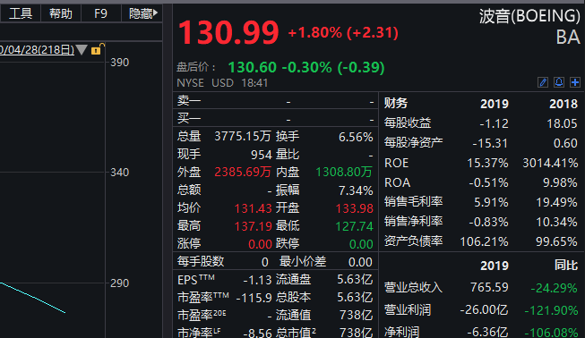 今日,波音股价盘中一度涨超6%,随后回吐涨幅一度转跌,最终收涨2%。