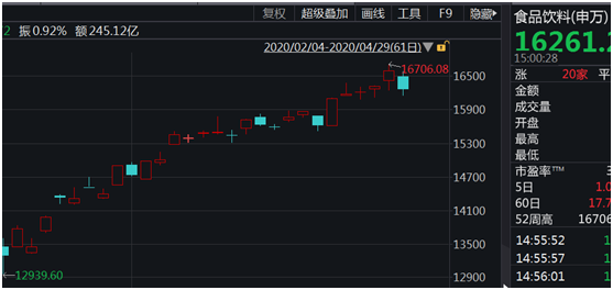 部分个股业绩不达标,是今日大消费股大跌的导火索。近两日一季报披露进入最密集的高峰期,由于疫情影响,一季报业绩雷不断。此前已披露的大消费个股普遍业绩上佳,如牧原股份一季报业绩大增8倍,三全食品一季报业绩增5倍,而且市场预期消费股能抗住疫情冲击保住业绩不降,因此消费股成为资金规避一季报业绩雷的避风港。而昨日披露一季报的伊利股份、双汇发展、舍得酒业等,业绩都低于投资者预期,导致避险资金出逃,股价大跌。
