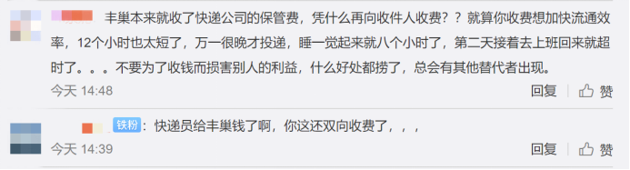 事实上,快递员在丰巢投递快递时已经进行交费,丰巢大格每次收费为0.4元,中格和小格每次收费0.35元。此次又推出会员制,相当于对快递员和用户两边收费,在网上引起热议,更有很多网友表示吃相难看。