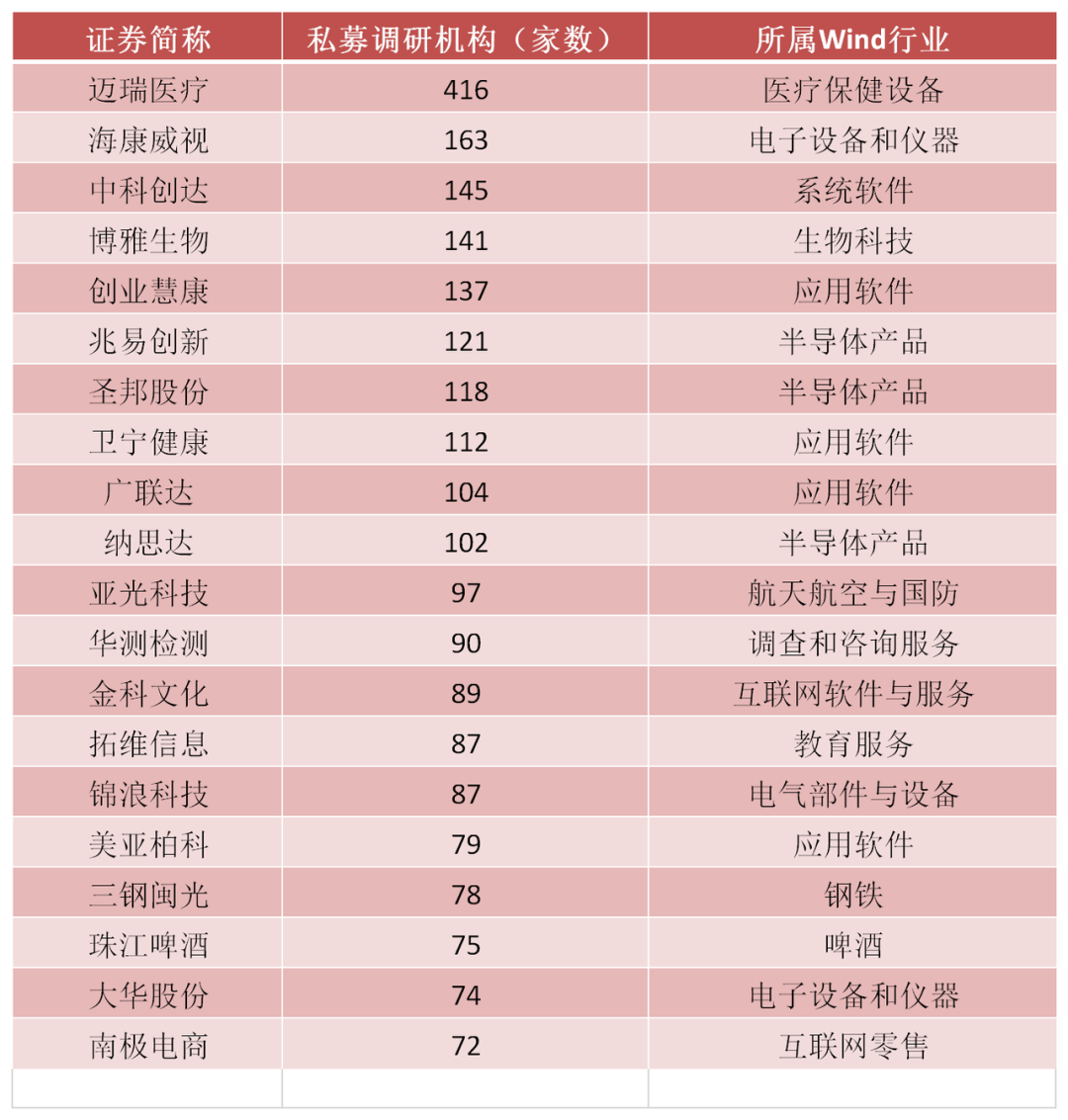 除了百亿私募外,私募排排网热搜私募的调研动态同样受到投资者关注。于翼资产共计调研27次,公司创始人陈忠分别调研了中药股云南白药和西药股仙琚制药。但斌的东方港湾年内调研共计9次,主要涉及信息科技行业,基础化工股道明光学也得到东方港湾的关注。梁宏的希瓦资产年内调研7次,主要参与了天宇股份、开立医疗、圣邦股份、华峰测控、康力电梯、锦浪科技、迈瑞医疗的调研。