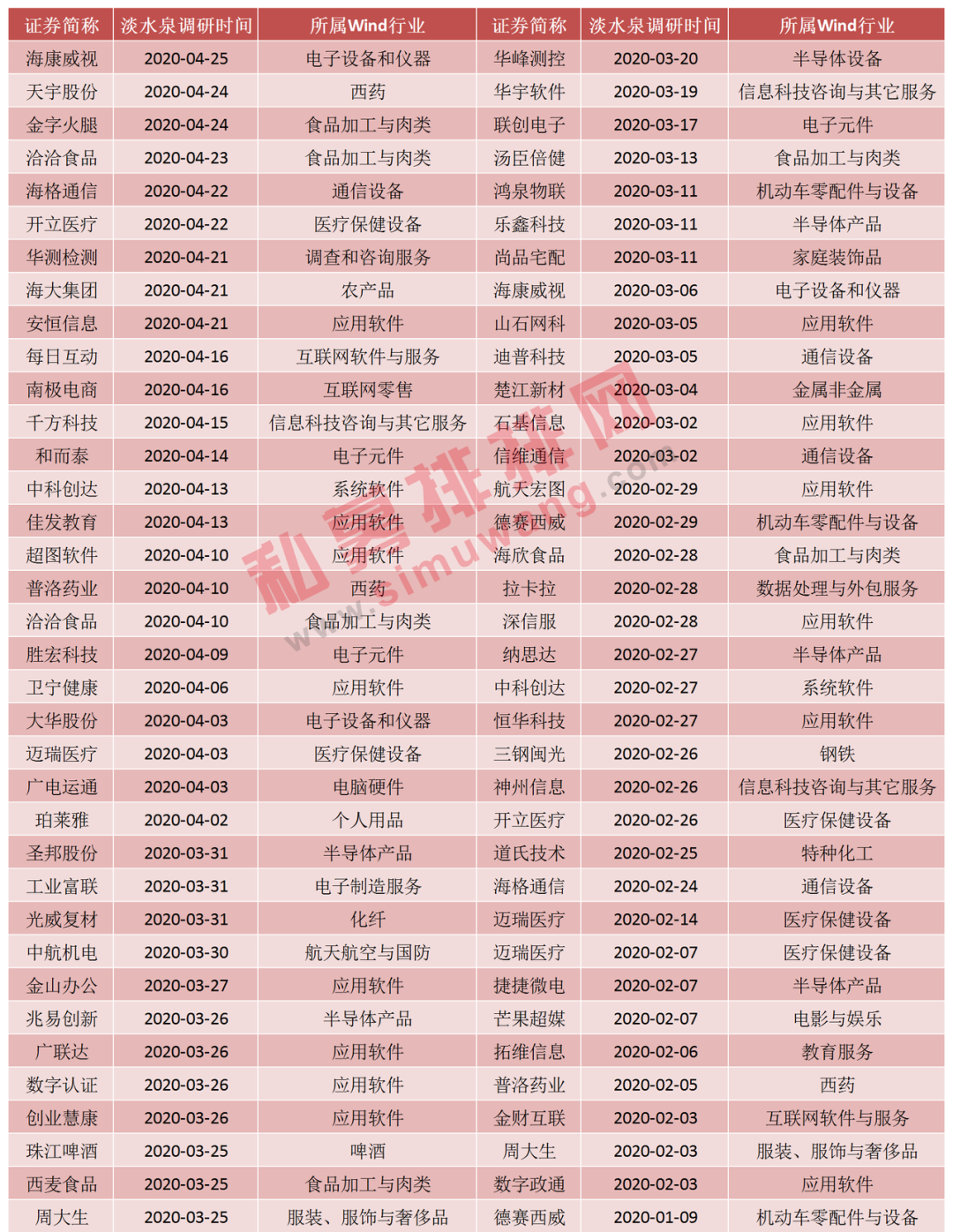 百亿私募敦和资产以69次调研位列第二,关注度最高的前三只个股是迈瑞医疗、洽洽食品、兄弟科技。可选消费是私募一季度关注的重点,因疫情发酵休闲食品类宅经济受益,原本是公司淡季的洽洽在一季度表现不平淡,Q1收入同比增长10.3%。除了洽洽食品外,西麦食品、牧原股份、克明面业、三全食品等食品加工个股也获得敦和资产的调研。