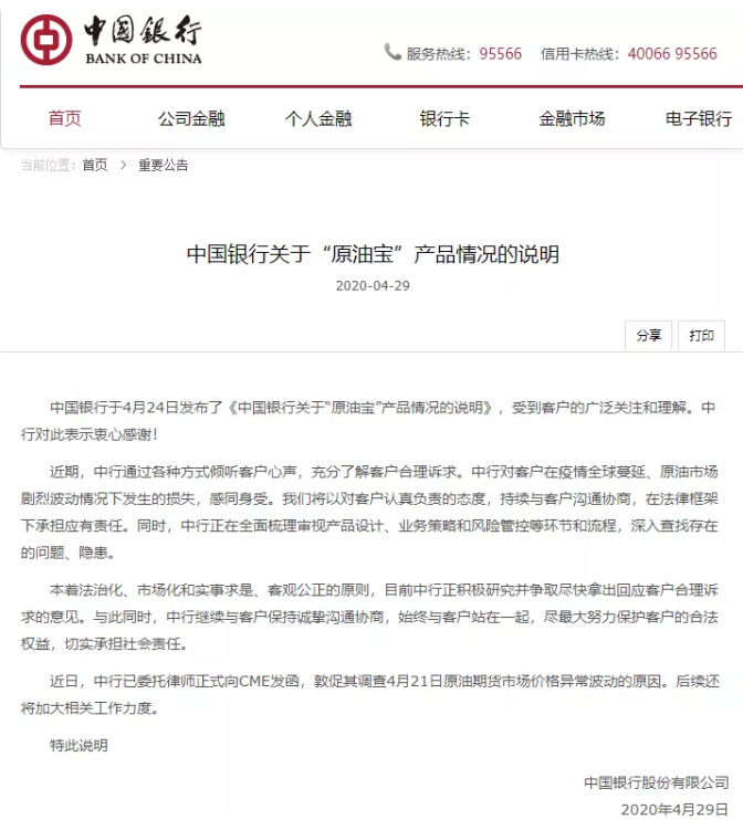中行最新回应“原油宝事件”