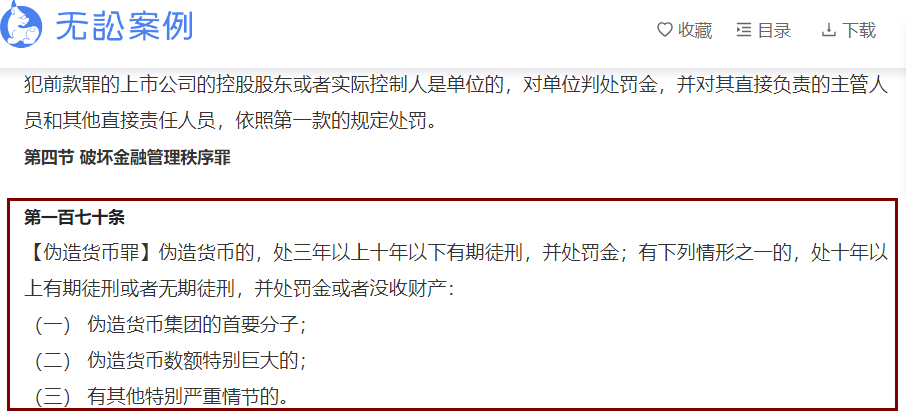 值得一提的是,银行或者其他金融机构的工作人员购买伪造的货币或者利用职务上的便利,以伪造的货币换取货币的,处三年以上十年以下有期徒刑,并处二万元以上二十万元以下罚金;数额巨大或者有其他严重情节的,处十年以上有期徒刑或者无期徒刑,并处二万元以上二十万元以下罚金或者没收财产;情节较轻的,处三年以下有期徒刑或者拘役,并处或者单处一万元以上十万元以下罚金。