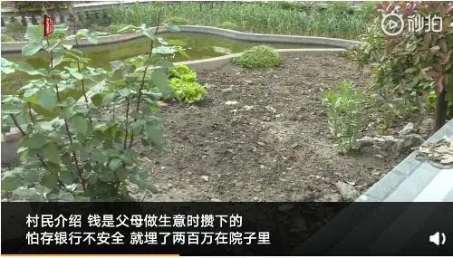 5年前,他们看电视节目里说,钱存银行卡里可能会被盗走,就没敢到银行存钱。而是打上捆埋在院子里,总共在地下埋了200万元。