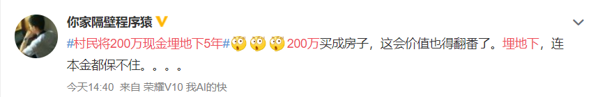网友可不这么认为。网友认为,如果存在银行,这200万还能有40多万的利息呢……前前后后的损失已经接近100万了。