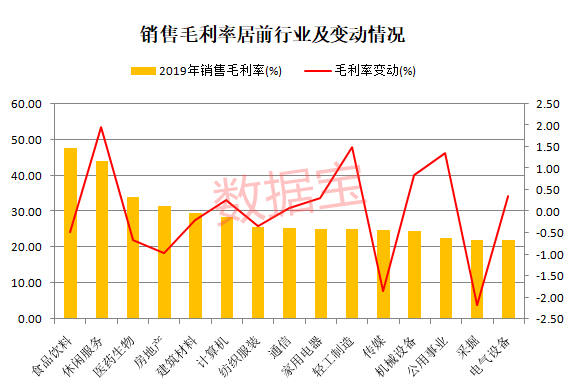 对比来看,农林牧渔行业整体毛利率较上一年提升3.98个百分点,提升最为明显。2019年国内农牧行业呈现出猪禽齐升局面,非洲猪瘟引发的长期禽价高位运行使得行业内供求关系发生逆转,畜禽养殖及饲料、动物保健等产业链充分受益,相关公司赚得盆满钵满。