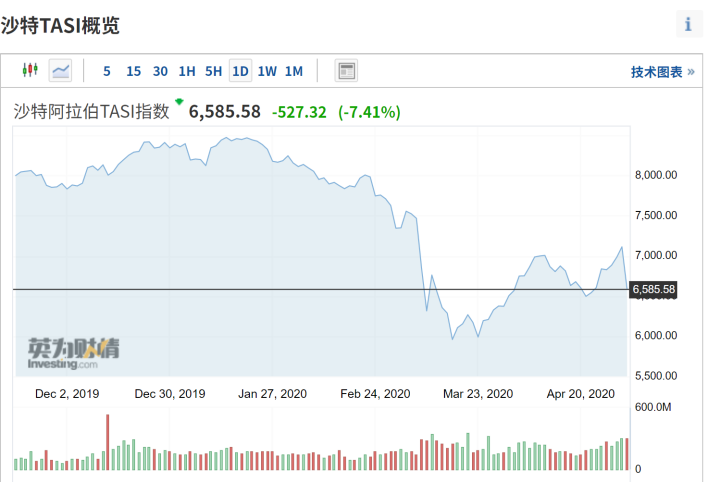 截至当天收盘,沙特TASI指数报收6585.58点,跌超7.41%。