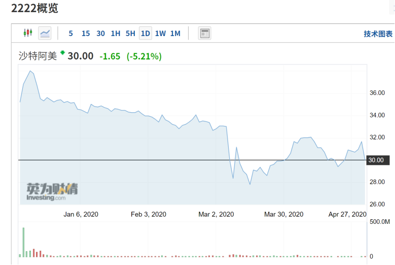 不过5月3日当天,受中东股市集体跳水影响,沙特阿美盘中也大跌近6%。截至当天收盘,沙特阿美的跌幅依然超5%以上。