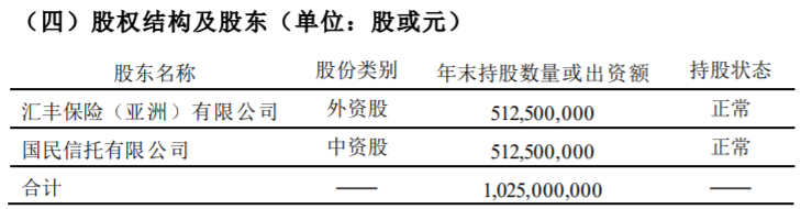 以下为汇丰人寿股东情况: