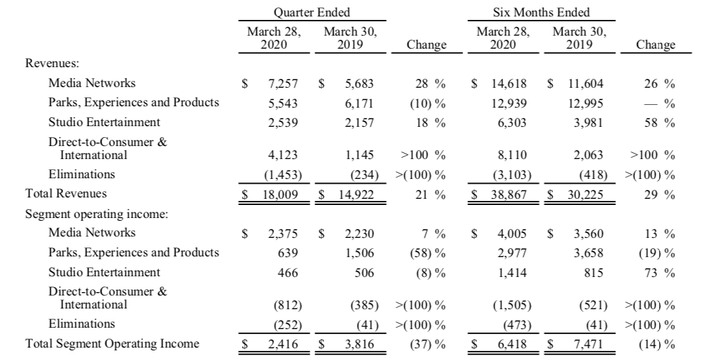“因2019新冠肺炎疫情采取的阻断其蔓延的措施正从几个方面影响着我们,尤其是主题公园、体验和消费者产品部门,我们已经关闭了主题公园、零售商店,暂停了游轮航行和导游,导致供应链中断,”迪士尼公司在周二的财务报表中说。