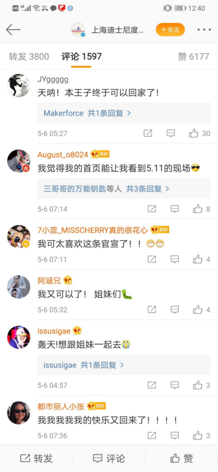 “在中国,我们看到了生活正在逐步重回正轨,鉴于最近几周一些管制措施陆续放开,以及我们乐园周边的零售和餐饮区域——迪士尼小镇的成功恢复运营,我们计划重新开启上海迪士尼乐园。”5月5日,华特迪士尼披露截止3月28日的2020年一季度后,迪士尼新上任的全球CEO Bob Chapek在投资者电话会中说。
