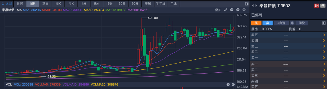 不出意料,泰晶转债开盘即“熔断”。