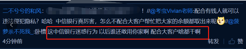 没想到,中信银行“救了”中国银行,现在全网都在刷屏中信泄漏艺人池子交易流水的事情。