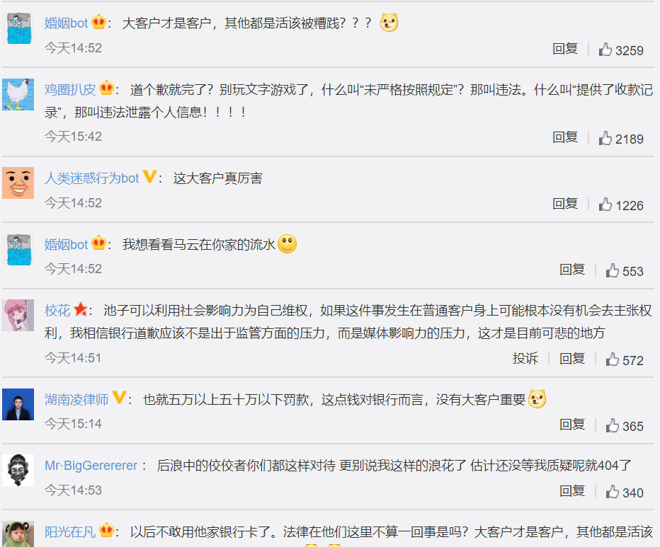 人民日报评论称,个人信息频被泄露,公众舆论早已深恶痛绝,涉事员工难道不知情?违规违法提供用户信息,后果很严重,涉事员工不在乎?不过,为了“配合大客户的要求”,这些底线一一突破。法律面前,从没有大客户小客户之分,客户再“小”,权益也应保障,不能打折,不能蚕食,更不能“出卖”。