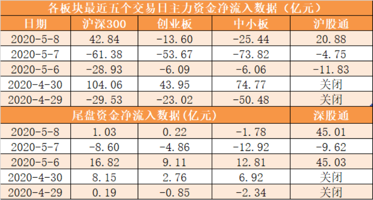 沪深300今日主力资金净流入42.84亿元,创业板净流出13.6亿元,中小板净流出25.44亿元。沪股通净流入20.88亿元,深股通净流入45.01亿元(本文中沪股通、深股通净流入额以当日已用额度来计,与成交净买入额略有差异,但表示的意义大体一致)。