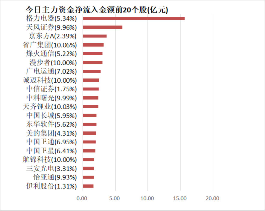 今日沪深两市主力资金开盘净流出16.08亿元,尾盘净流入7.56亿元,两市全天资金净流入1.57亿元。