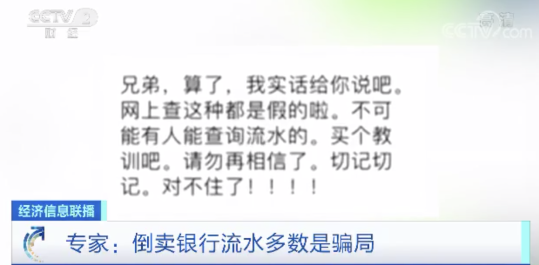 工信部互动媒体产业联盟专家委员 包冉:花个几百、几千元,甚至几万元,就能帮你查到某特定对象的银行流水信息、银行开户信息,这种几乎百分百全是虚假信息,都是骗人的。