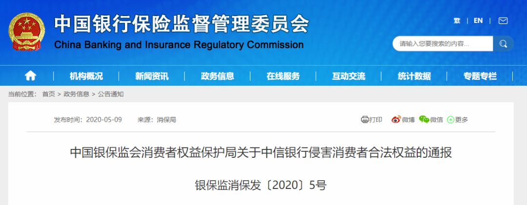 为践行以人民为中心的发展思想,落实依法监管理念,切实维护银行保险消费者合法权益,现将中信银行侵害消费者合法权益情况通报如下: