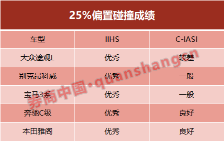 IIHS碰撞测试是目前同类测试当中最严格的。所以,参考IIHS标准做出来的C-IASI,评价体系还是很权威的。客观上,这个测评推动着国内车商对汽车安全性能的重视。
