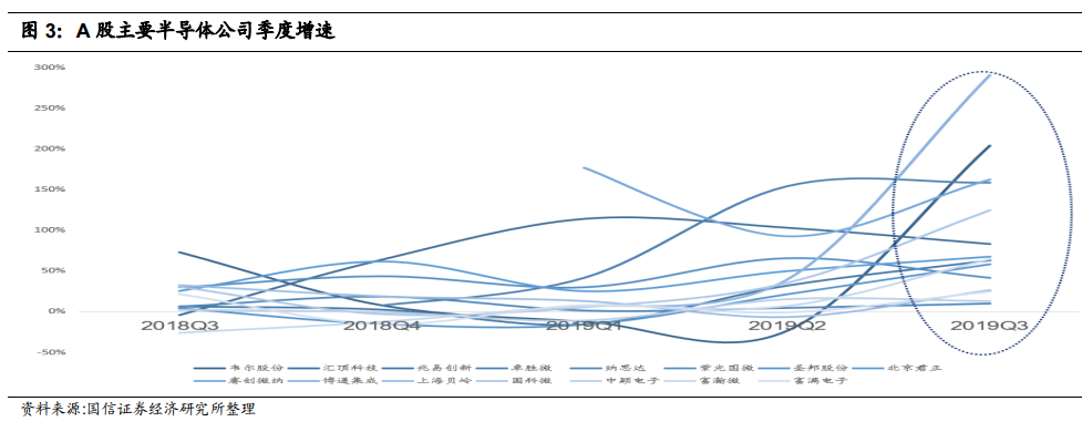 如果没有业绩,再大的故事也无法让行情持续。前面三个支撑逻辑都是定性的,而增长速度才是刺激大行情的主要推动力。特别是从2019年Q3开始的半导体行情,是因为2019年Q3的季度收入增速明显提升(下图中虚线圈中)。
