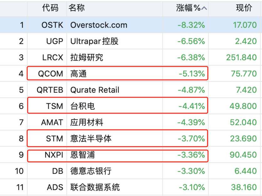 高通、台积电大跌