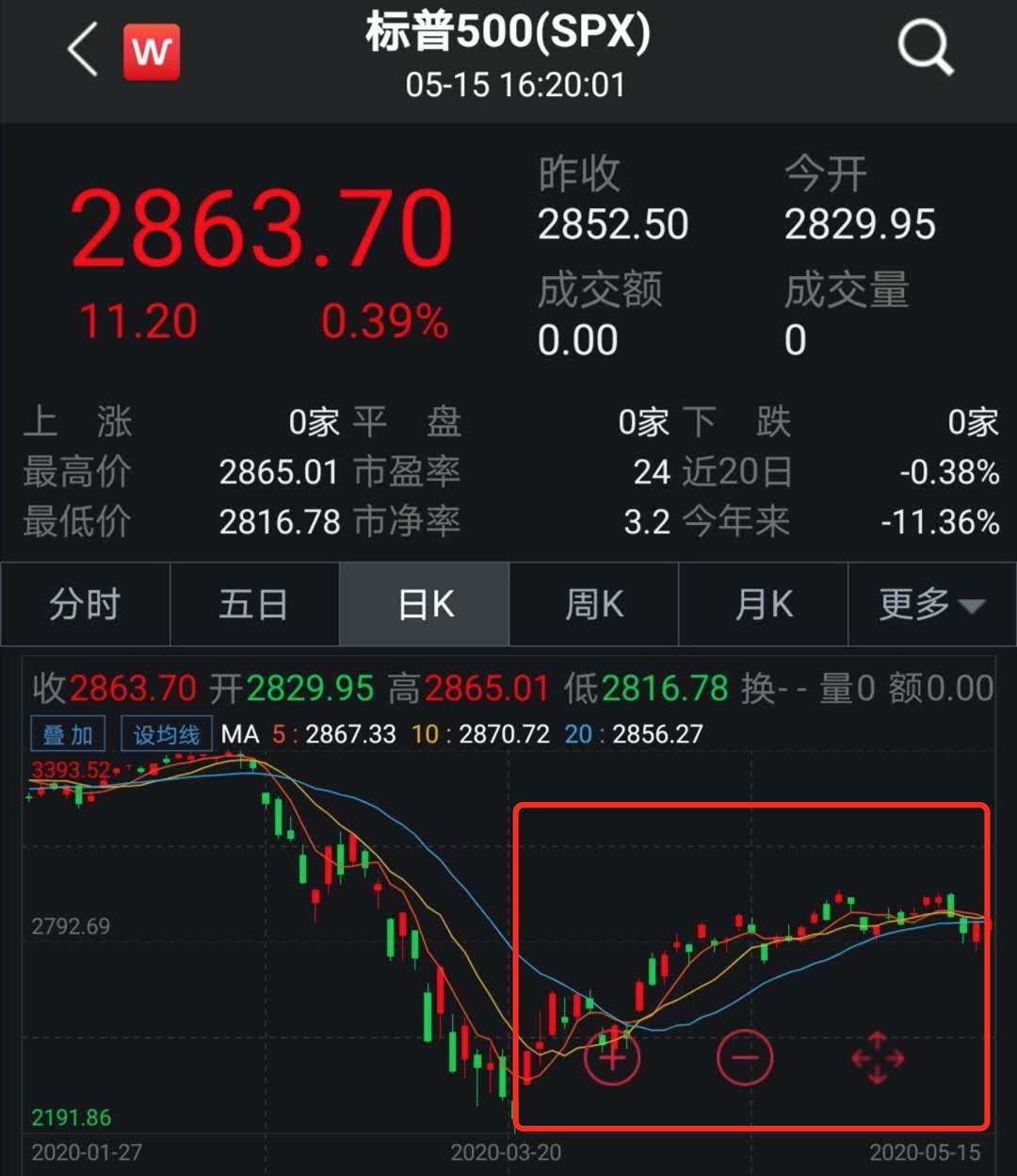 权重偏金融股的标普500,在本轮反弹中,一直不如偏重科技股的纳指。距3月20的低点,最高反弹约36%。