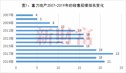 2019年,富力地产的权益合约销售目标1600亿元,最终仅完成86.37%,成为未完成当年销售业绩的6家上市房企之一。在克而瑞的排名中,富力地产又一次跌出了中国房地产行业销售规模TOP20阵营。